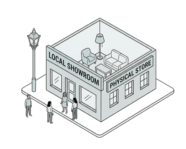 Showrooms können nicht alles zeigen – und erreichen nur lokale Kunden.